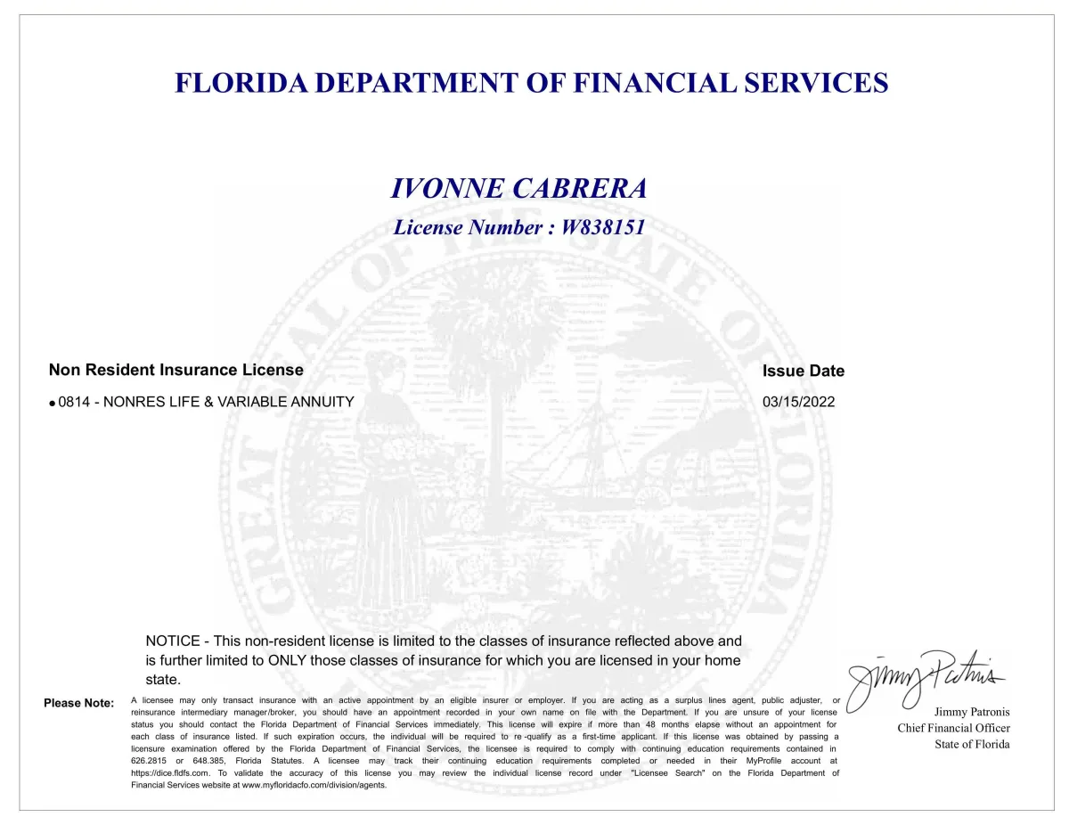My name is Ivonne Cabrera and because your family is what matters most, this is what I bring to your table: the courage to speak openly and honestly, the passion to assist you in protecting your family’s human and financial capital, and the compassion to be there for your family when you are not, because your family is what matters most.